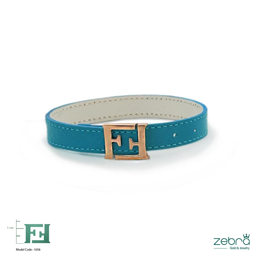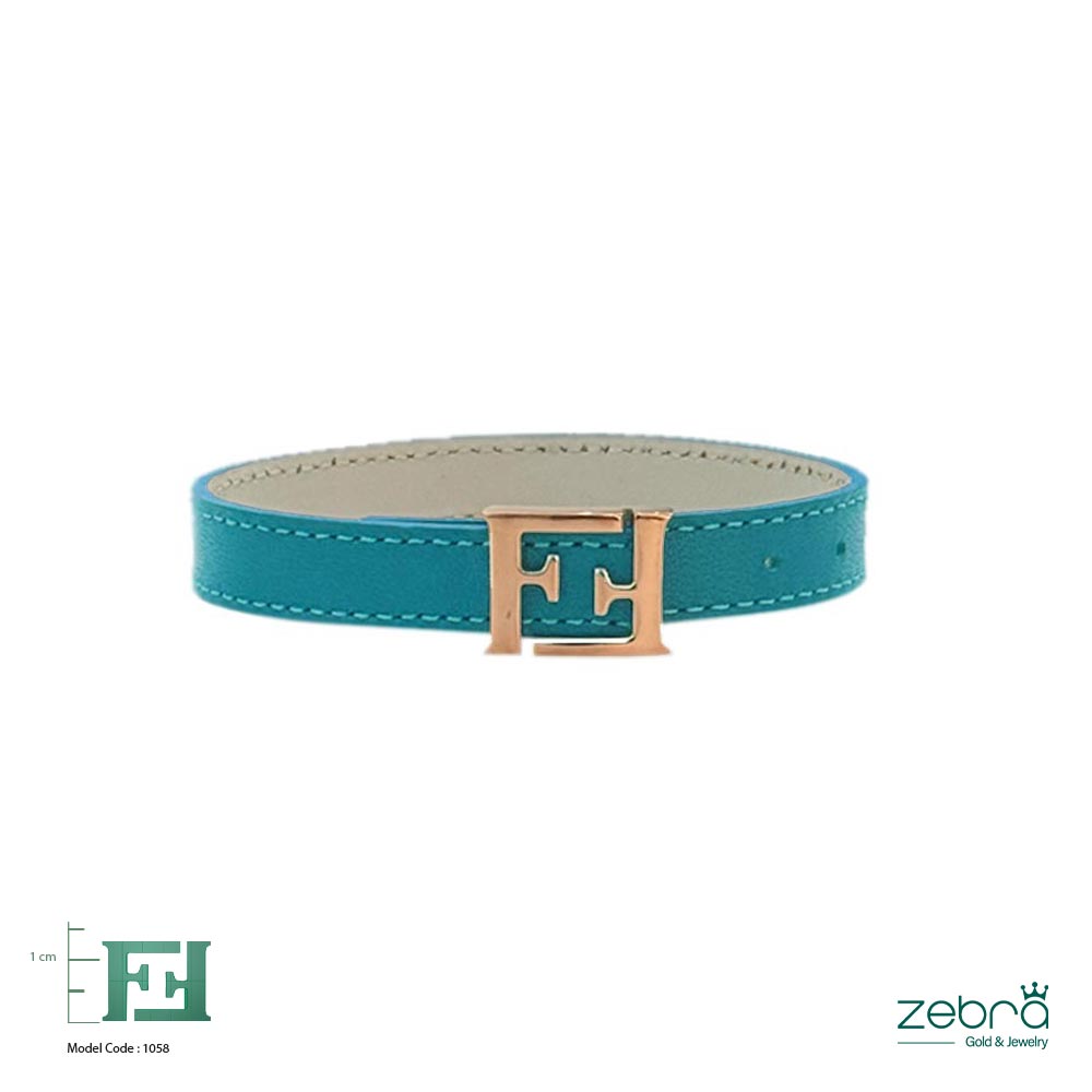 این دستبند چرمی فیروزهای طلا خاص از برند Zebra با بند چرمی فیروزهای و پلاک رزگلد طرح F، جلوهای مدرن و شیک به استایل شما میبخشد. طراحی پلاک که شامل دو حرف F است، الهامگرفته از لوگوی برند Fendi بوده و حس لوکس بودن را منتقل میکند.