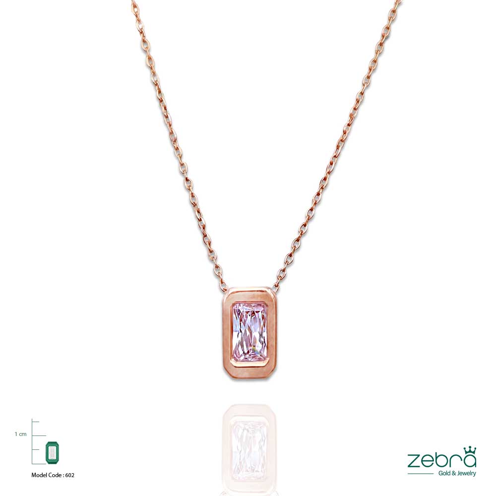 مدال و زنجیر طلا 18 عیار با سنگ زیرکون صورتی تراش باگت (کد ZG-N-022) از طراحیهای خاص و مدرن زبرا گلد است. سنگ صورتی با تراش باگت، زیبایی و درخششی منحصربهفرد دارد و در کنار قاب طلا، ترکیبی خیرهکننده و زنانه ایجاد میکند.